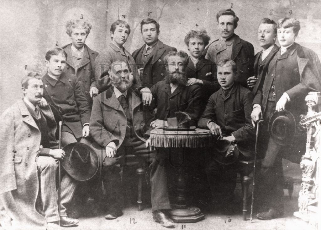Descriziun: Artisć che laurâ te bercstot pro Gustin Valentin (1858-1941) da Cialaruns: 2) Fonjo Craffonara da Fodom (le pere ê da La Val); 3) Giuvani Ploner da Neustift (le pere ê de Badia); 4) Jan M. Peskoller de Badia; 5) Paul Caminades de Badia; 6) Peter Valentin nasciü a Porsenú (le pere ê de Badia); 7) Vijo Peskoller de Badia; 8) Filize Castlunger de Badia; 11) Giuvani Valentin de Badia.