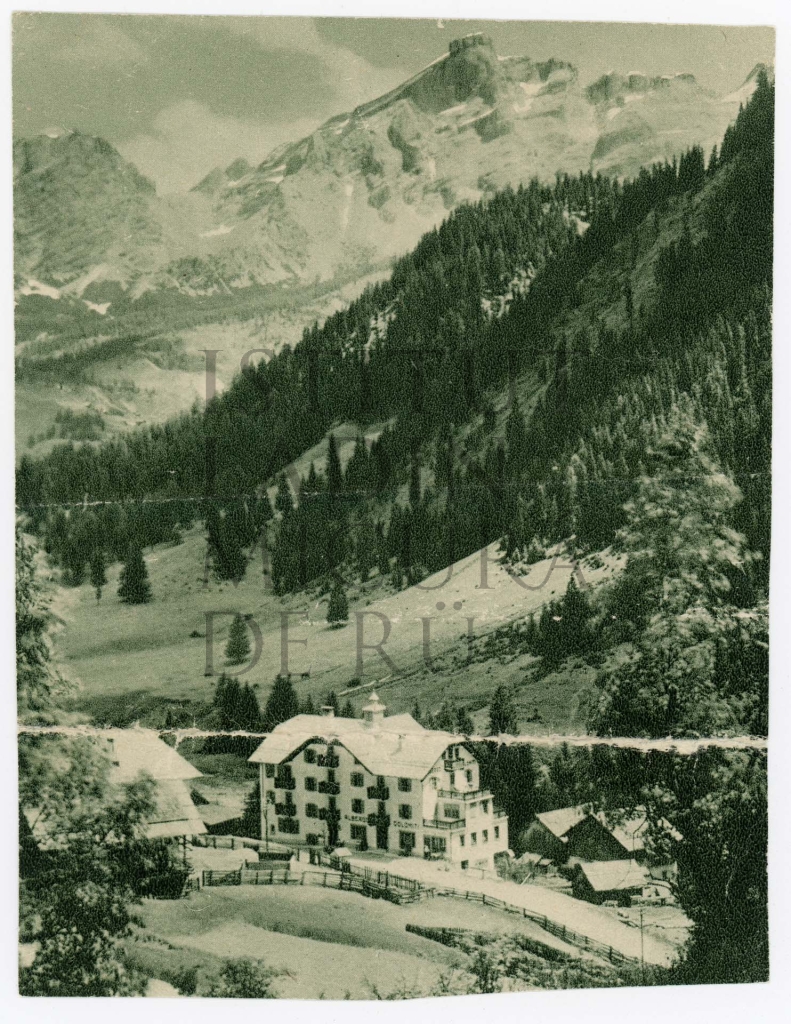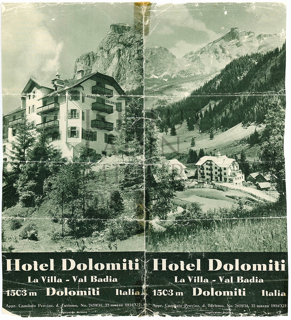 Copia de na pert dla brosciüra dl Hotel Dolomiti che rapresentëia l'hotel odü da sot sö. (paisc_31)