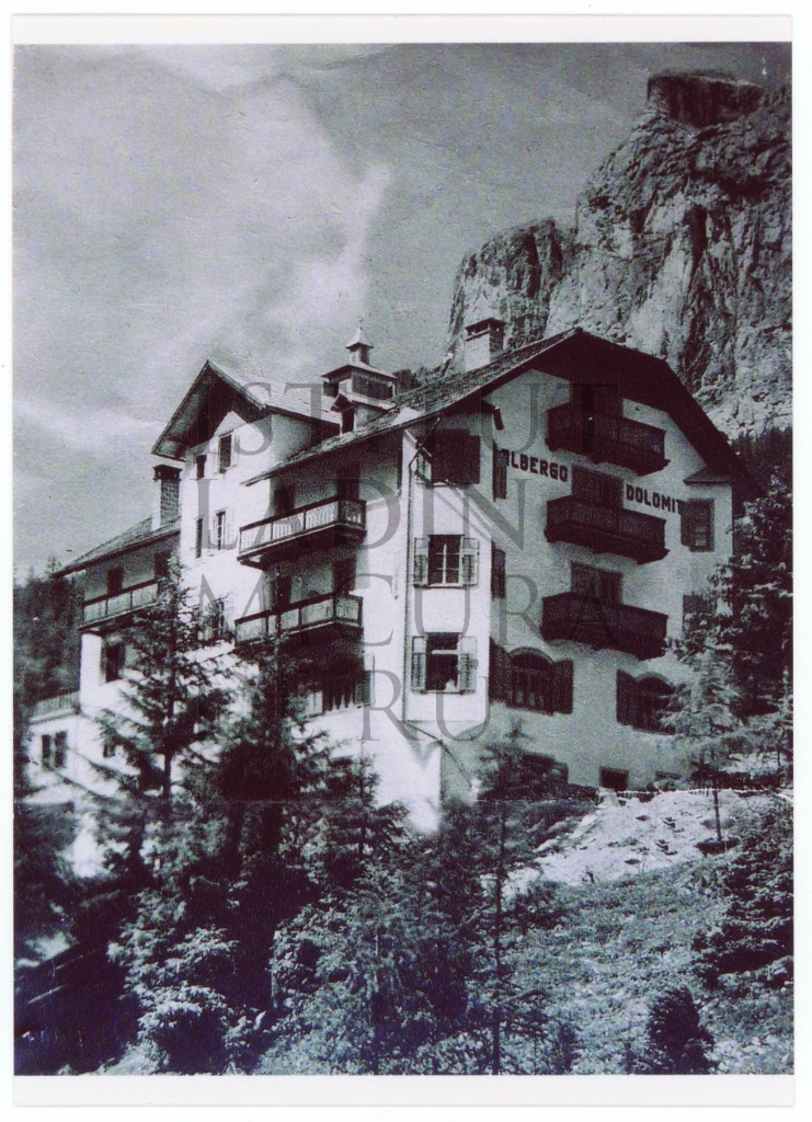 Descriziun: Copia de na pert dla brosciüra dl Hotel Dolomiti che rapresentëia l'hotel odü da sot sö.
