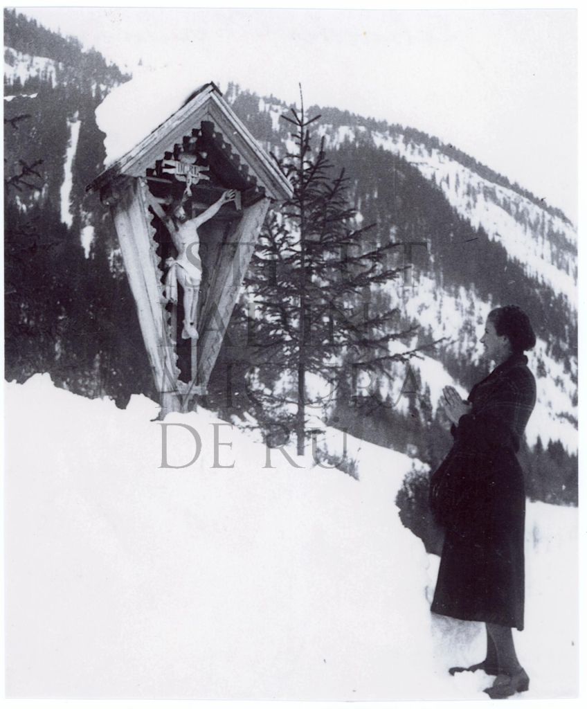 Descriziun: Copia de na fotografia che rapresentëia Cherubina Pescollderungg dl Soz, maridada Kostner, dan da n crist d'invern.