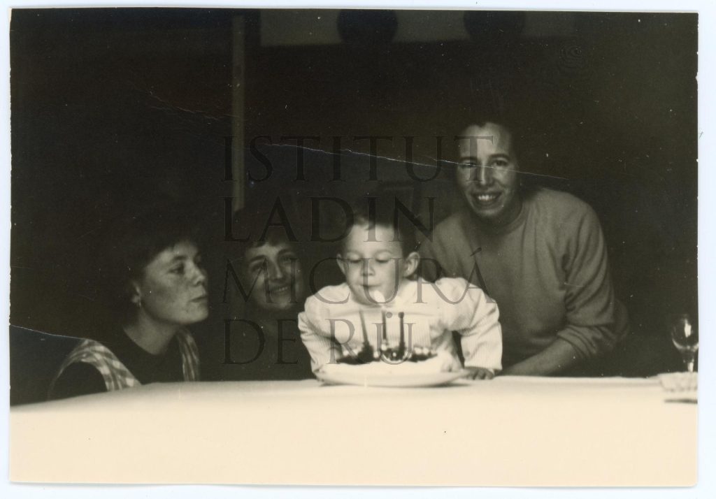Descriziun: La fotografia rapresentëia trëi ëres y n möt che sofla les ciandëres sön la turta de compliagn.