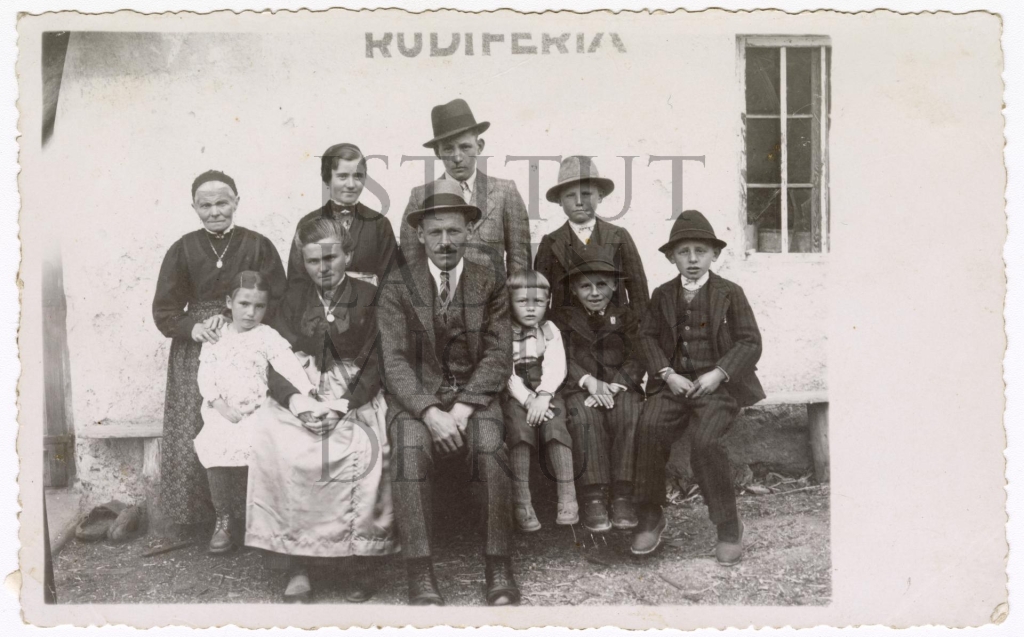 Descriziun: Fotografia che rapresentëia la familia de Franzl Irsara da Castalta y Sefl Rudiferia da Rüdeferia dessura.