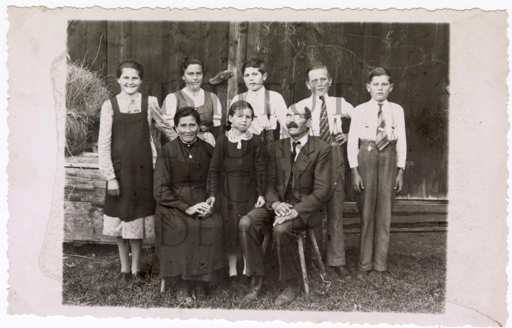 Descriziun: La fotografia rapresentëia la familia de Domëne Crazzolara da Cianins dessot y Maria Pizzinini de Runch.