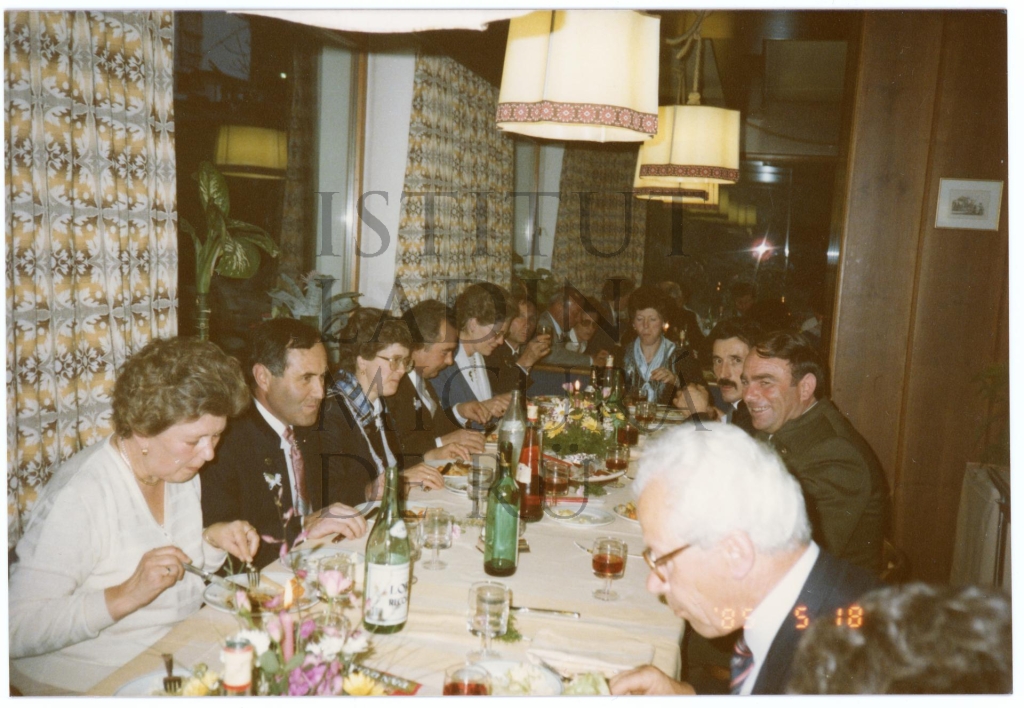Descriziun: La fotografia rapresentëia n grup de inviá da noza tratan le past dla noza de Sofia y Hubert Costa.