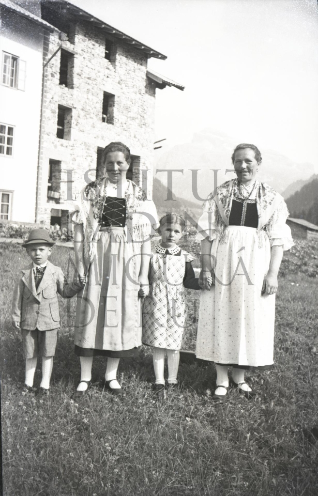 La fotografia rapresentëia Caterina (Nina) y Angela Canins adöm ai pici Hilda y Iaco Granruaz dl Aurora. (vijo_rottonara_la_ila_53)