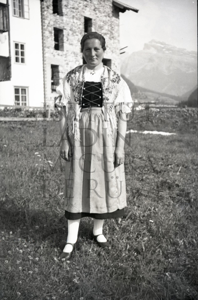 Descriziun: Le retrat rapresentëia la jona Caterina (Nina) Canins (1922-2025) da La Ila, maridada Comploj.