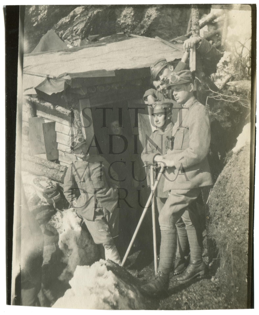 Descriziun: Soldas sön la porta de na baraca al Monte Piana. Danter chisc él ince le colonel Ottavio Zoppi, soldá premié cun deplö medalies y che é, tl tëmp do la vera, ince sté senatur dl Rëgn dla Talia.