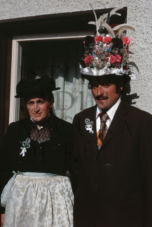 Ël y ëra dla Val Badia cun le guant da zacan pro na noza (troht, ciapel da sonsél, sonséla).
