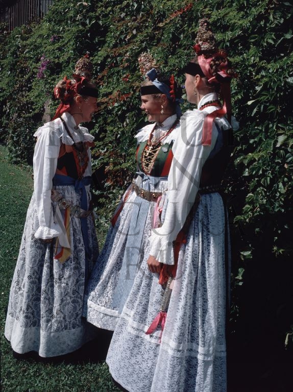 Jones de Gherdëna cun guant tradizional (troht, guant da zacan, guant dala Gherdëina cun la gherlanda spiza, tradiziuns, usanzes).
