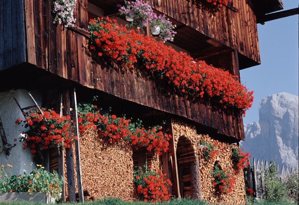 Ciasa tradizionala de na vila, plëna de ciüf. Dant él gnü arcuncé sö cotan de lëgna por l'invern.