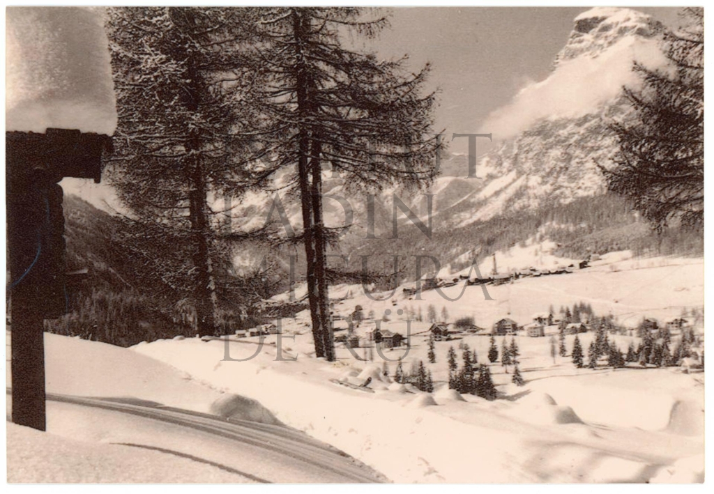 Descriziun: Copia de na fotografia vedla che mostra La Ila; la fotografia é gnüda tuta sö cuntra Sassongher, bonamënter da Cianins Dessot demez.