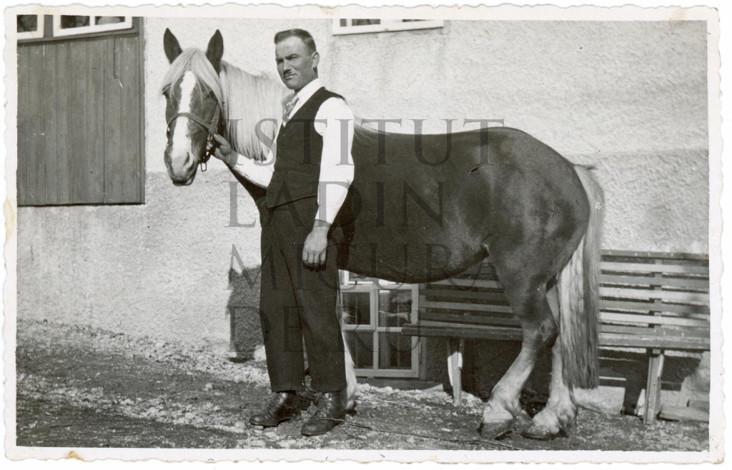 Descriziun: Retrat de n ël vistí da festa che se porta para n ciaval.