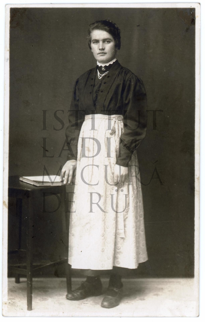 Descriziun: Retrat che rapresentëia na jona; al podess ester na fotografia tuta sö te n stüde fotografich.