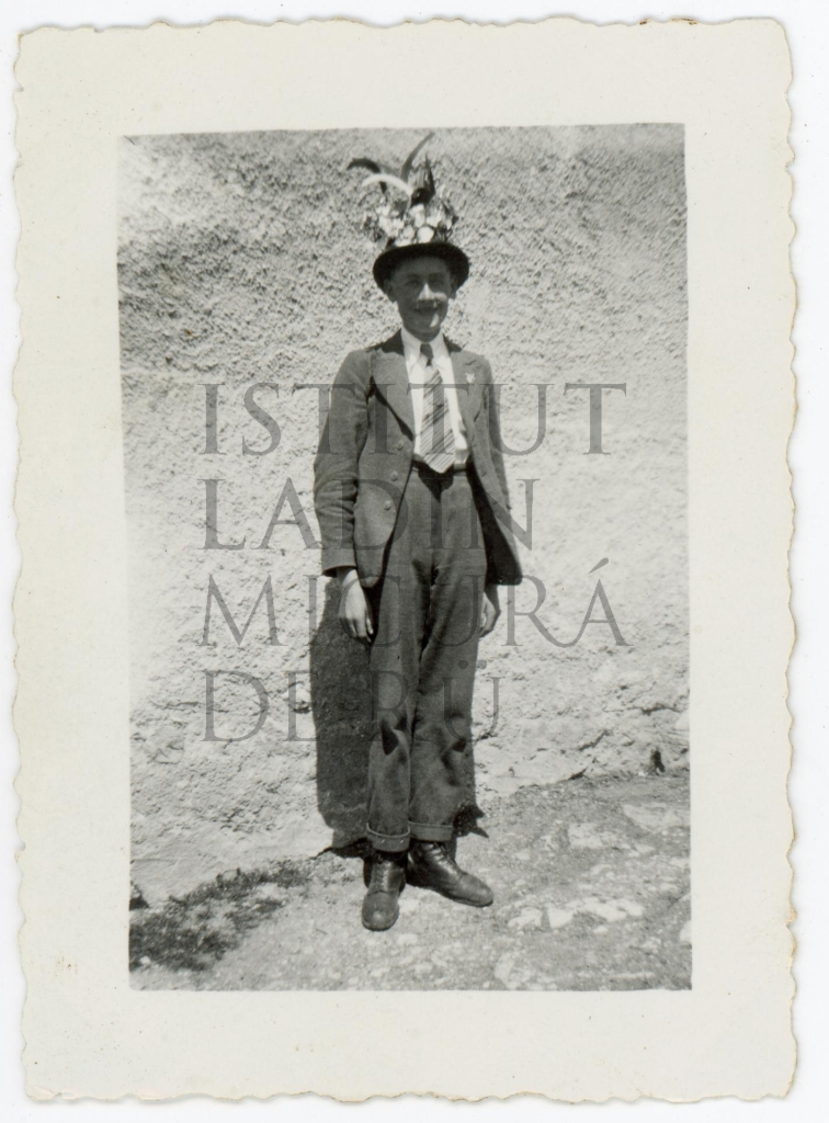 Fotografia de n jonn vistí cun le guant da festa y le ciapel da plömes. (foto_dapunt_pepi_23)