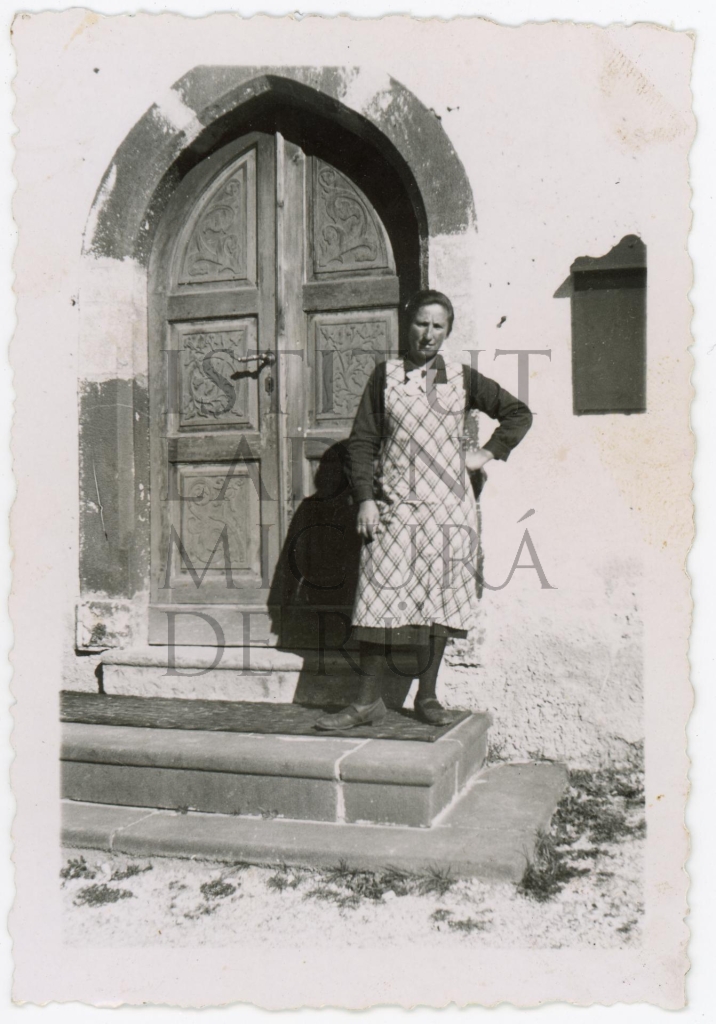 Descriziun: Retrat de Maria Dapunt metüda sö dan da na porta.