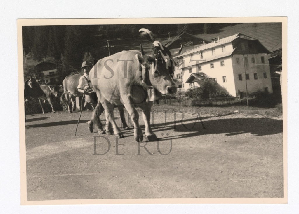 Descriziun: Gní de munt: i tiers che é gnüs portá d'isté sön munt vëgn indô condüc te paisc.