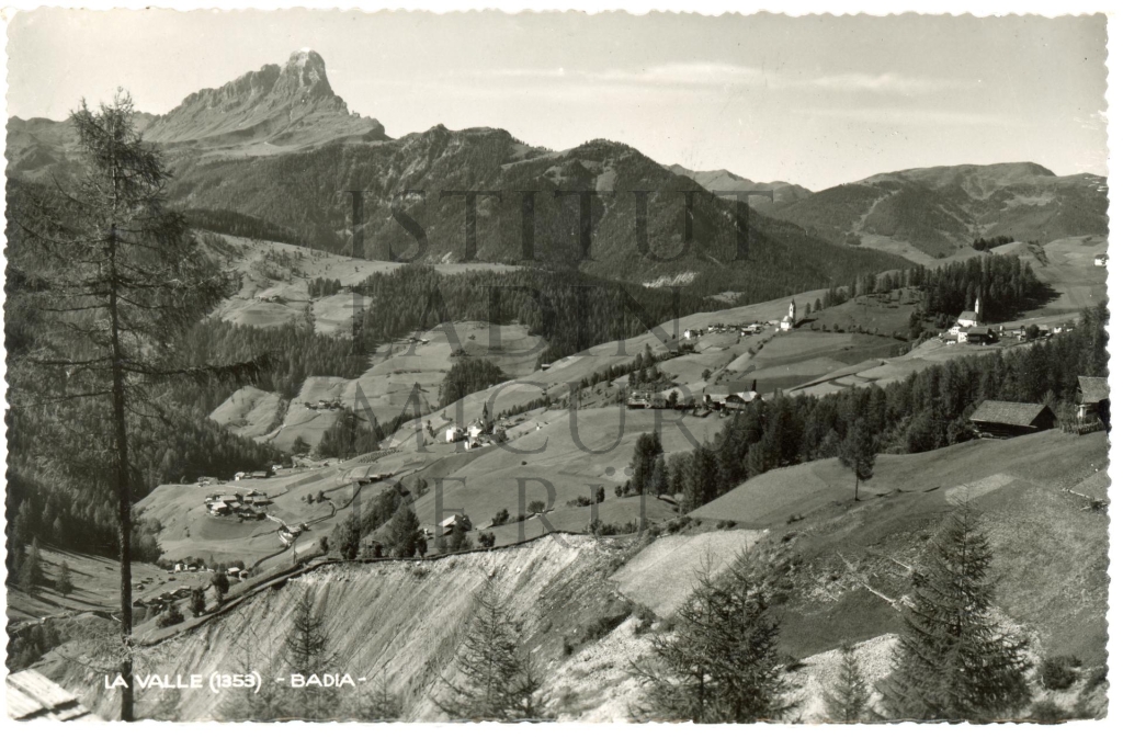 Descriziun: Fotografia che rapresentëia le paisc da La Val; da odëi éle les trëi dlijies de La Val, val' fraziun/vila y Pütia doia. La fotografia é bonamënter gnüda tuta sö dan le 1930, ajache Dlijia Vedla é gnüda trata jö incër chël ann; ma le ciampaní é ciamó da odëi aldedaincö.