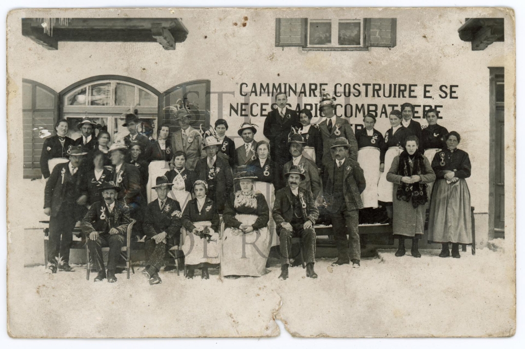Descriziun: Fotografia de grup de na noza a La Ila dl tëmp dl fascism.