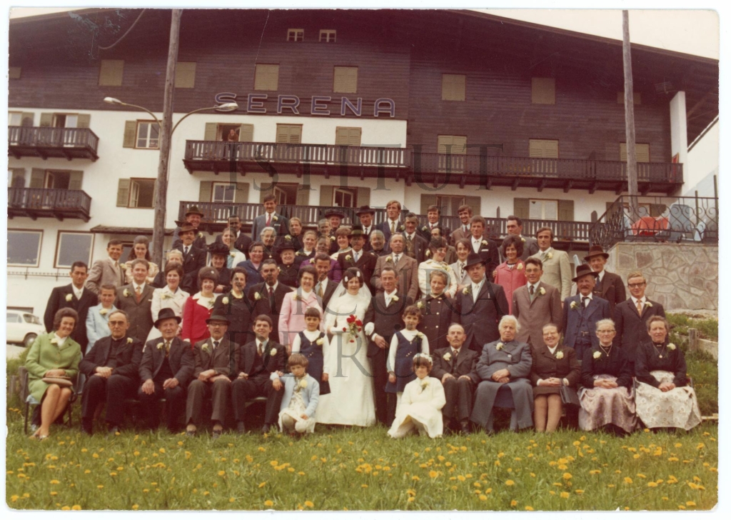 Descriziun: Fotografia de grup dla noza de Tarejia Colz y Albert (Zelter) Piccolruaz al Serena a Badia.