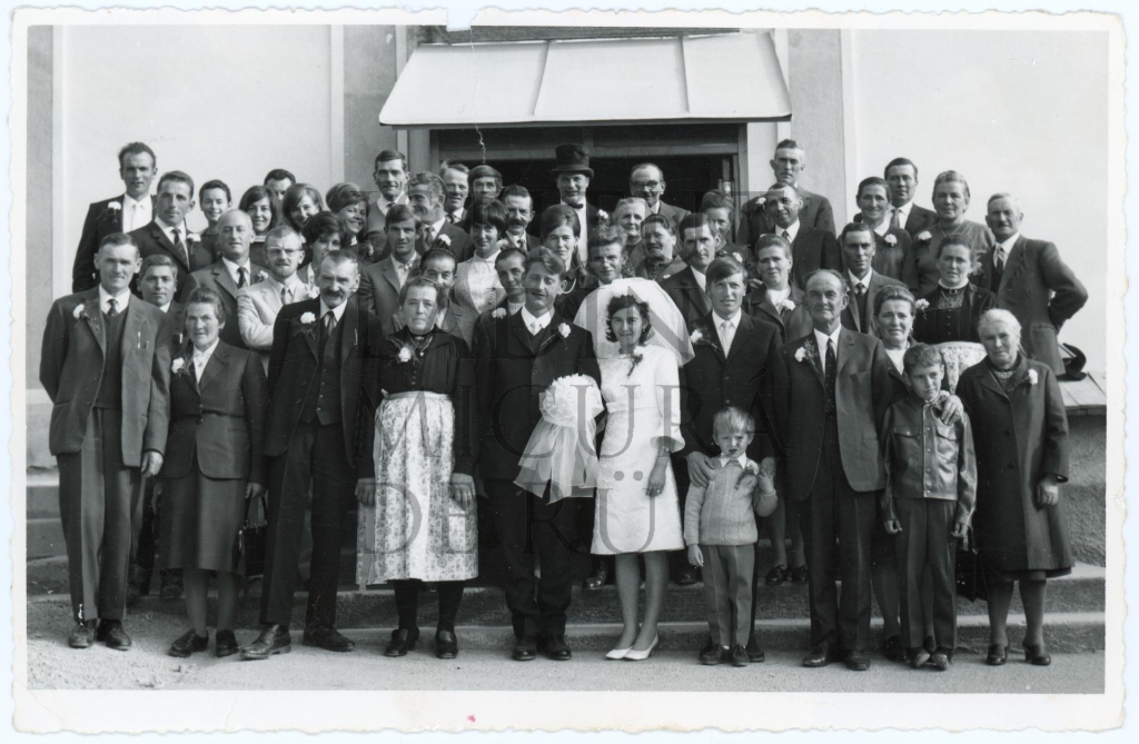 Descriziun: Fotografia de grup dla noza de Sepl Ploner de Rü a S. Ciascian.