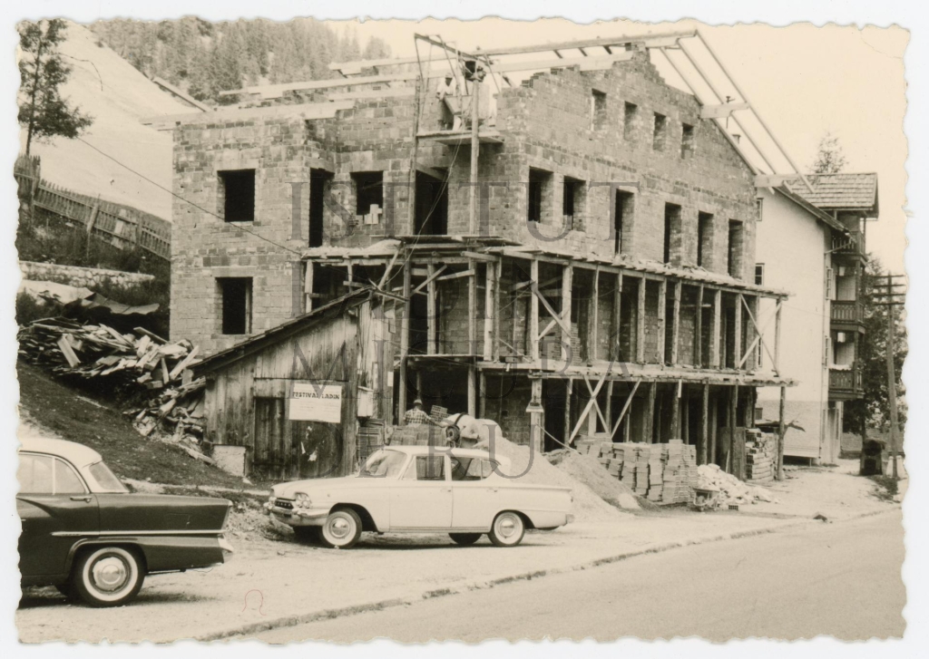 Descriziun: Fotografia che rapresentëia la costruziun de "Ciasa Nives", incö dependance dl Hotel Dolomiti, a Funtanacia, La Ila.