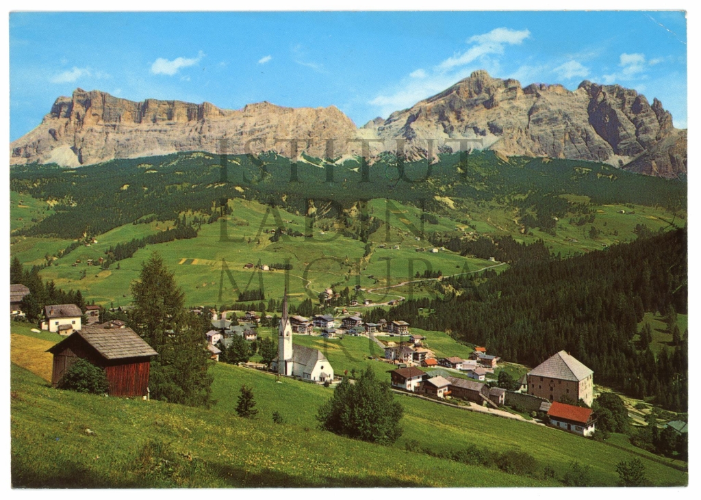 Descriziun: Cherta che rapresentëia le paisc da La Ila en direziun de Sas dla Crusc y Lavarella.