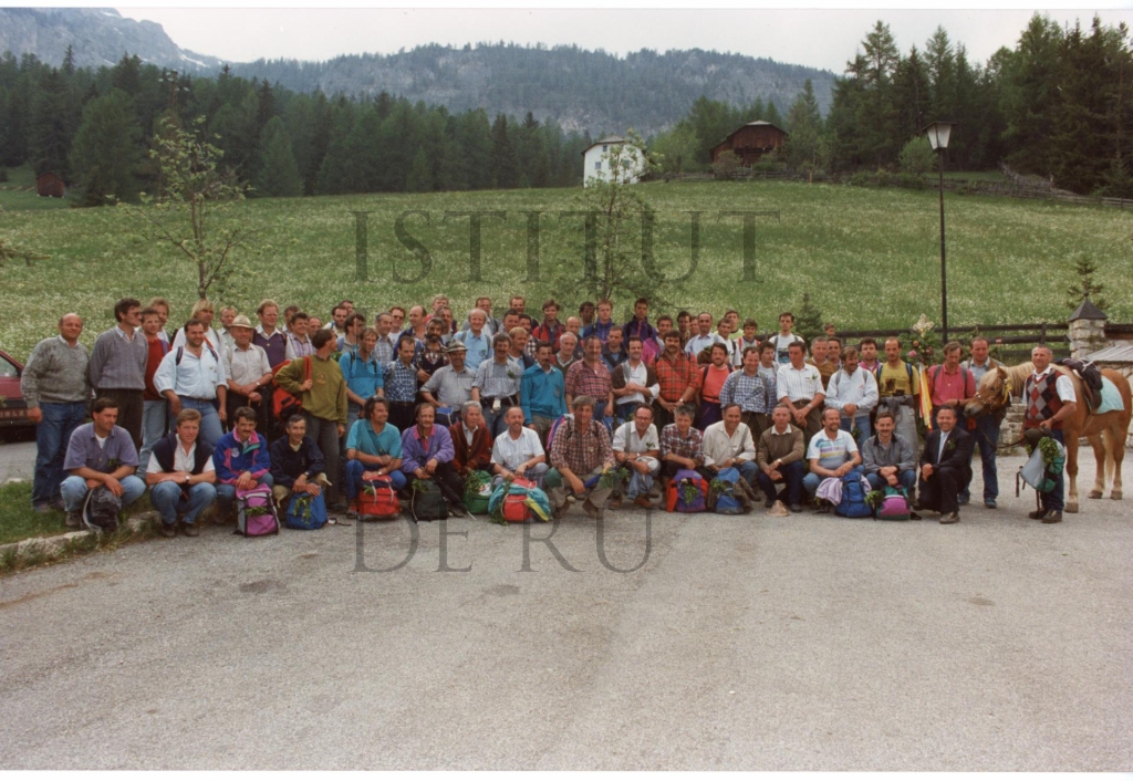 Descriziun: Fotografia de grup di ëi da La Ila che â tut pert al pelegrinaje ia en Jeunn, bonamënter ti agn '90.