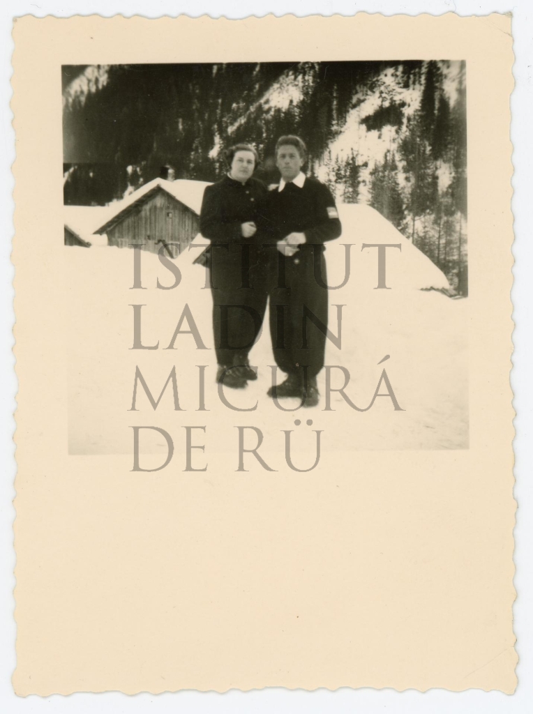 Descriziun: Fotografia che rapresentëia na jona y n jonn che se fej fá jö tla nëi.