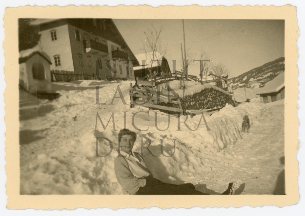 Descriziun: La fotografia rapresentëia na jona sentada tla nëi dan dal "Hotel Dolomiti" a Funtanacia.