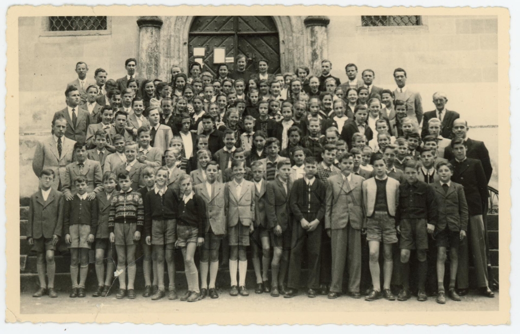 Descriziun: Cherta che rapresentëia na fotografia de grup; bonamënter n grup de scolari y de insegnanc.