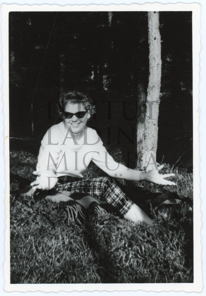 Descriziun: Retrat de Hilda Crazzolara cun i odlá da sorëdl.