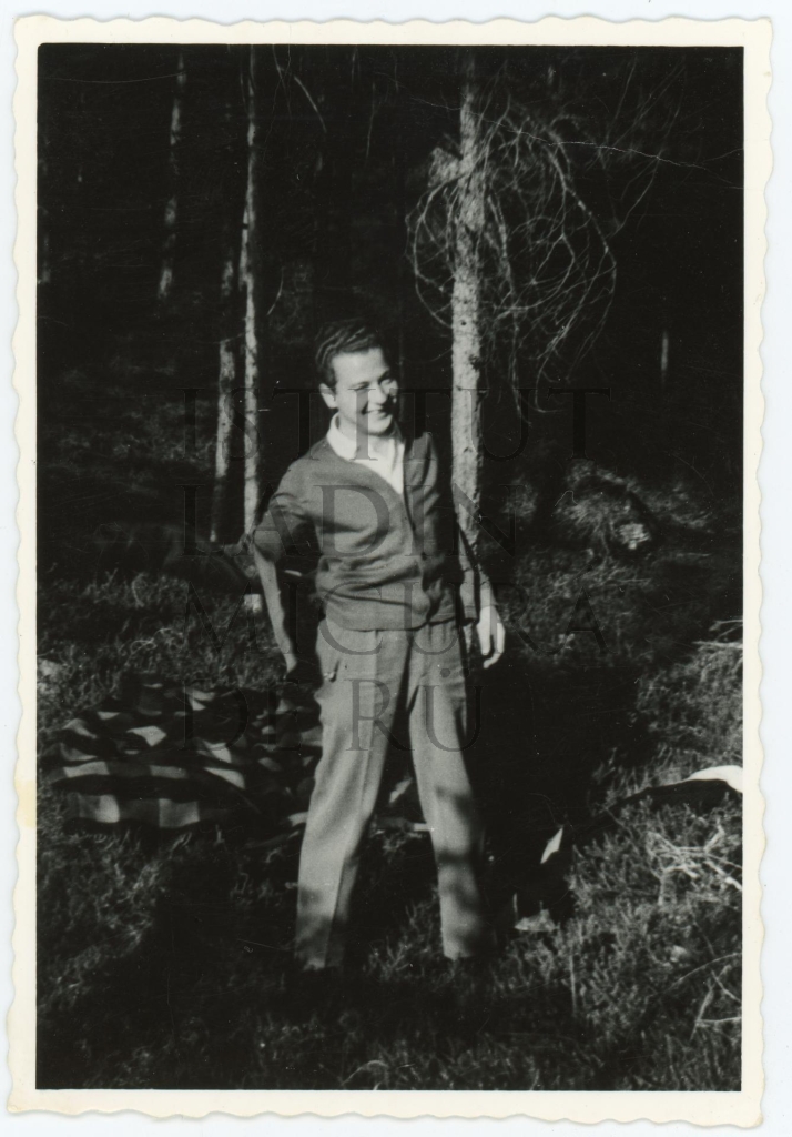 Descriziun: Retrat che rapresentëia Franzl de Garage tl laur da se vistí la iaca.