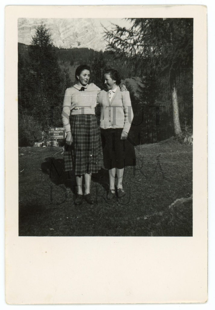 Descriziun: La fotografia mostra döes jones sön n pre dlungia al Hotel Astoria a La Ila.