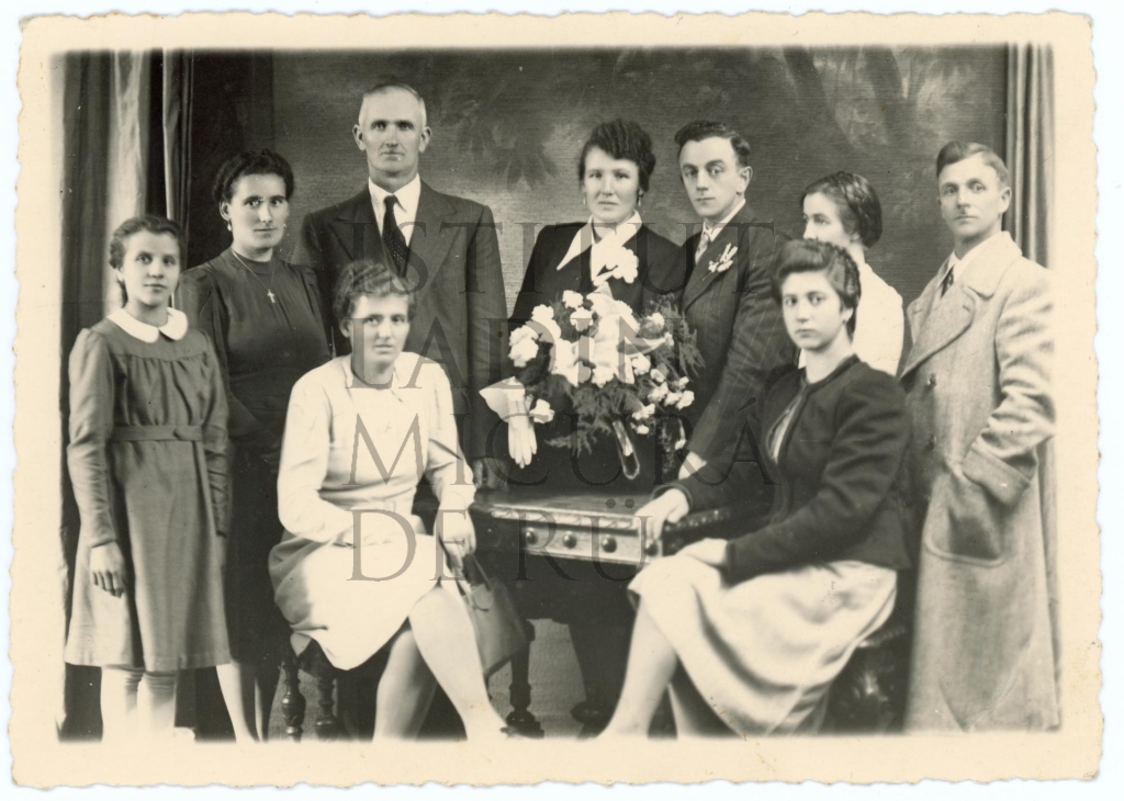 Descriziun: La fotografia mostra na fotografia de grup de na familia che se lascia fá jö te n stüde fotografich.
