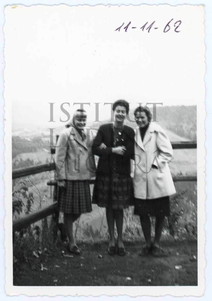 Descriziun: Fotografia che rapresentëia trëi jones: da man ciampa Maria Crazzolara, Rita Crazzolara (?) y Hilda Crazzolara.