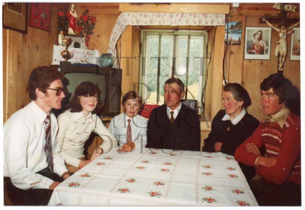 Descriziun: La fotografia mostra la familia Dapunt da Sotrú pro mësa.