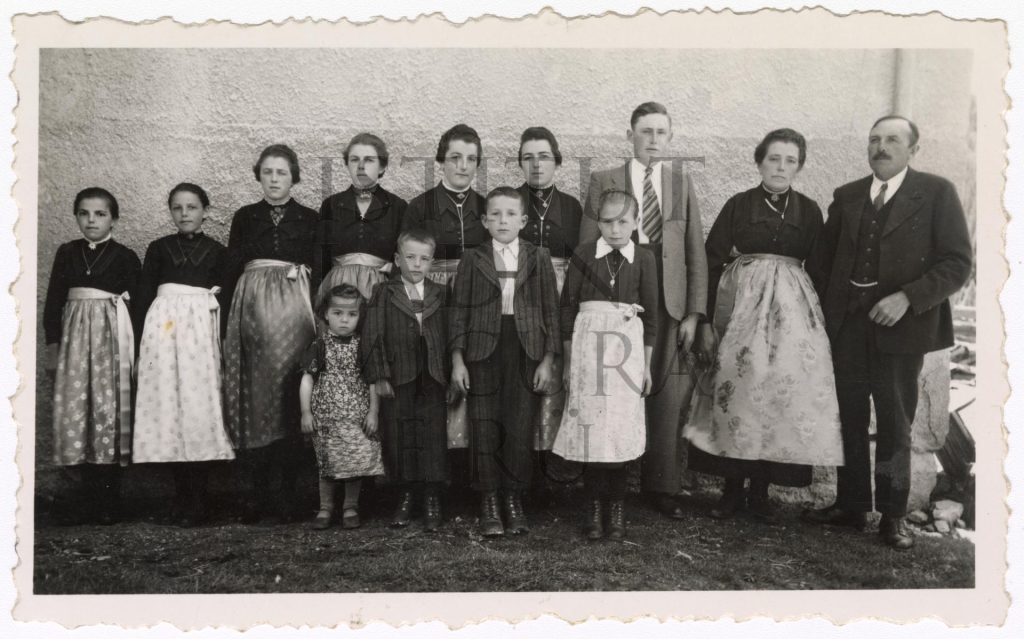 Descriziun: Fotografia de grup dla familia de Birgit y Milio Pescollderungg dl lüch La Costa a San Ciascian.