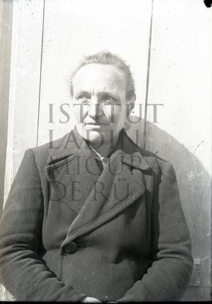 Descriziun: Le retrat rapresentëia Judita Bernardi, nasciüda Valentini (dl Moro), uma de Fonjo Bernardi da La Ila.