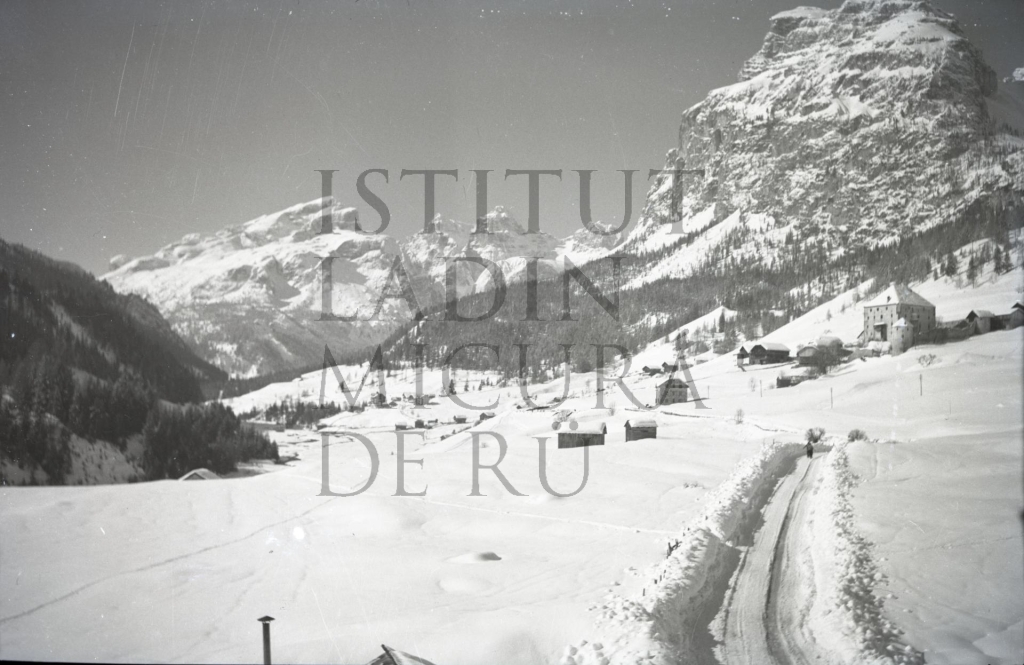 Descriziun: La fotografia mostra le paisc da La Ila d'invern; la fotografia é gnüda tuta sö cuntra le Grup dl Sela.