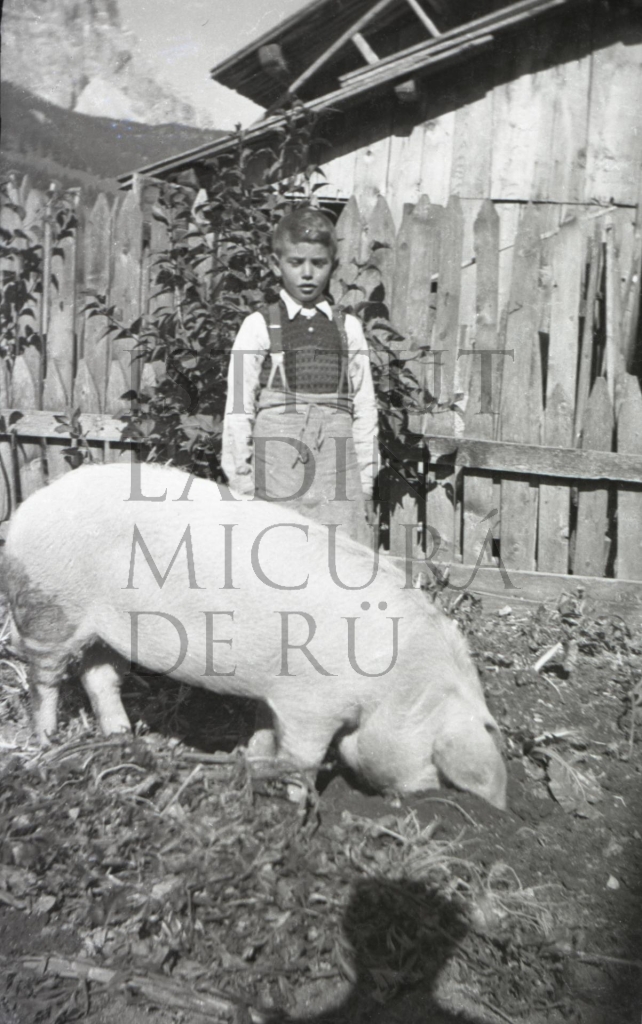 Le retrat rapresentëia un di fredesc Dapunt, Giuvani o Sepl (bonamënter Giuvani), cun n porcel sö Sotsas. An vëiga ince l'ambria de Vijo dapecá dla fotografia. (vijo_rottonara_la_ila_46)