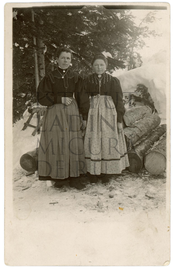 Descriziun: Cherta che mostra bonamënter na uma y süa möta che se lascia fá jö dan da valgönes taies d'invern.