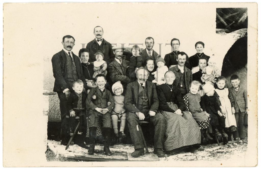 Descriziun: Cherta che mostra na fotografia de grup de deplü generaziuns de na familia dla Val Badia.
