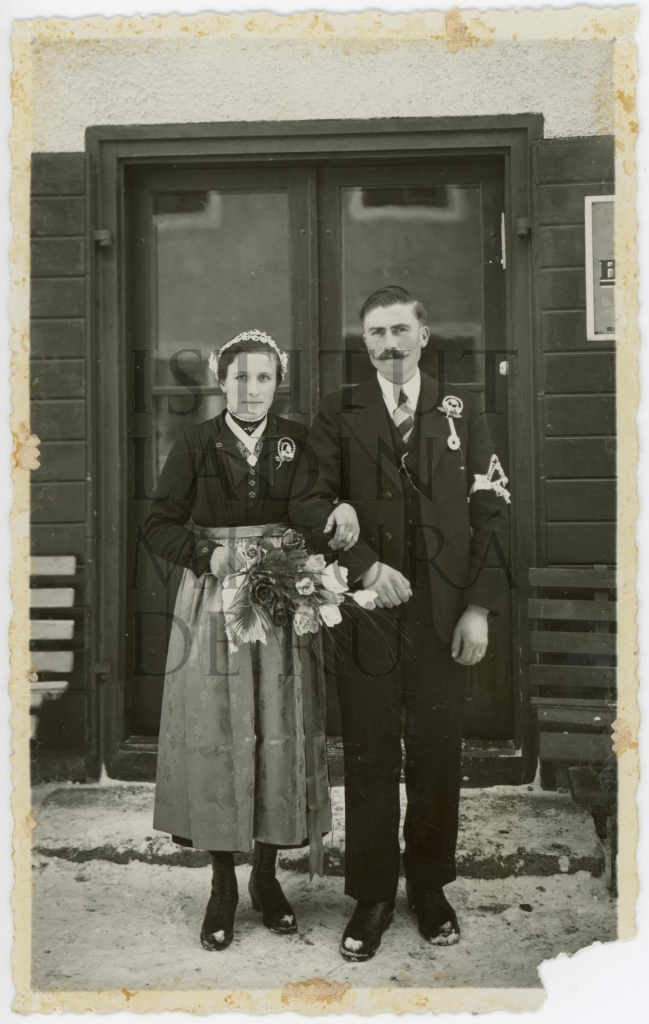 Descriziun: Le retrat mostra i nüc Celestina Declara dl lüch da Fistí a Badia y Sepl Sorarú de Calfosch.
