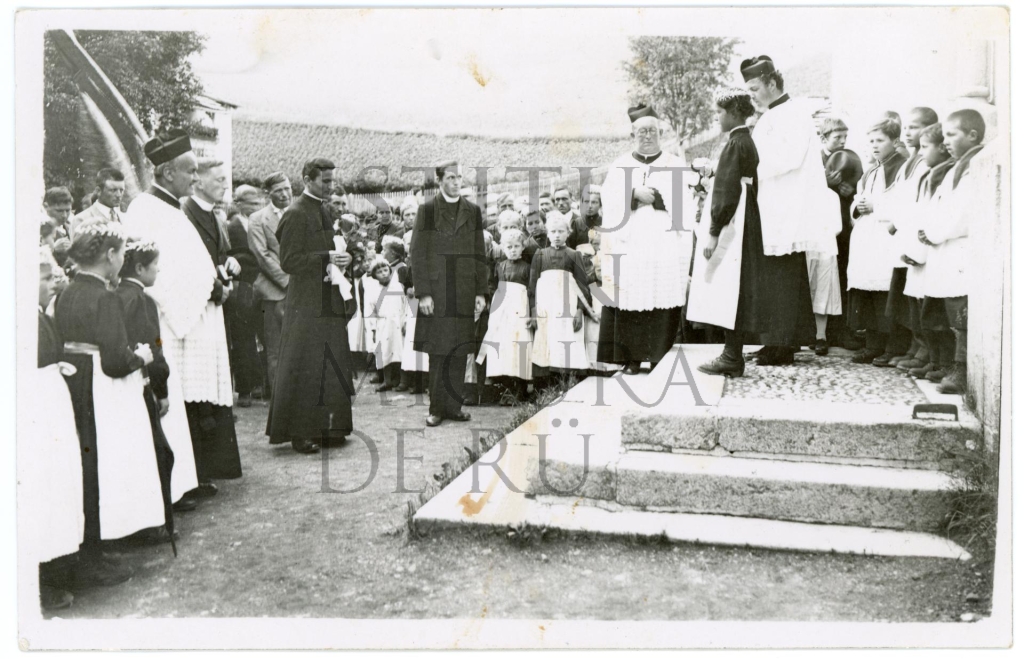 Descriziun: Le retrat mostra n momënt tratan na Mëssa Novela: na möta é tl laur da dí sö n raiml al primiziant.