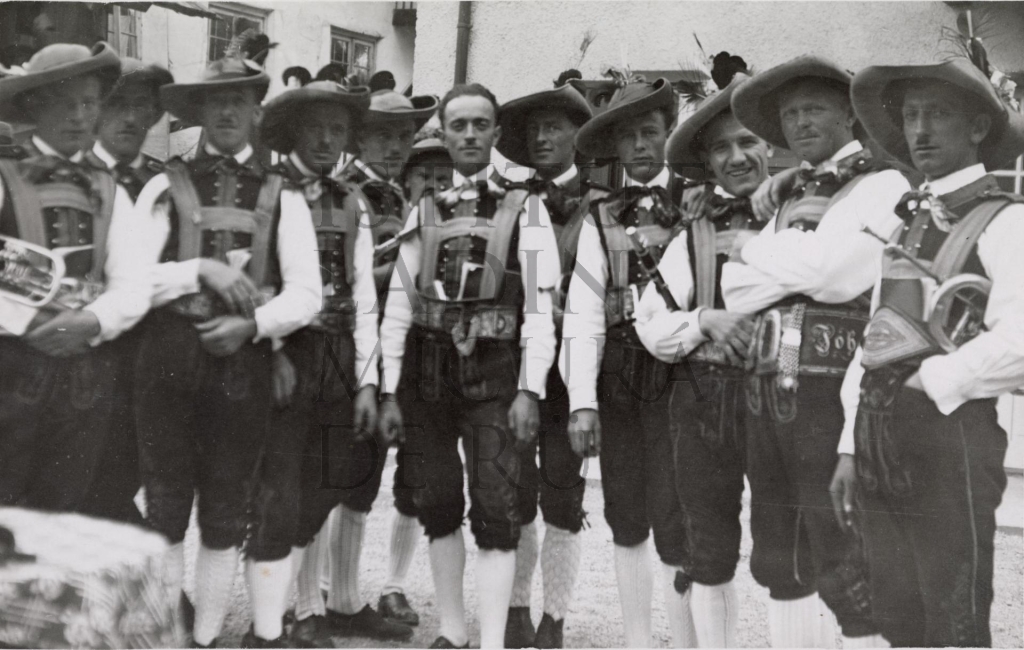 Descriziun: Le retrat mostra valgügn musizisć, bonamënter mëmbri dla musiga de Sëlva.