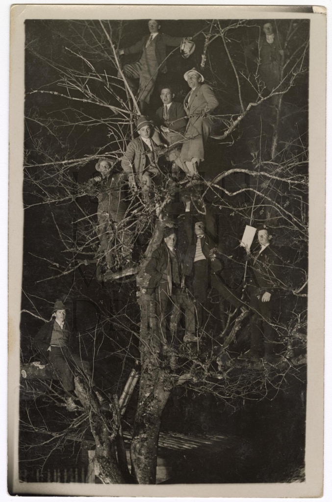 Descriziun: Le retrat mostra n grup de jogn sö por n lëgn, bonamënter a Calfosch.