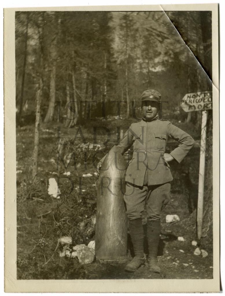Descriziun: N soldá talian sta sö por la fotografia cun na granata dl esert austriach, che é gnüda ciafada nia esplodüda sot al ju de Son Zuógo.