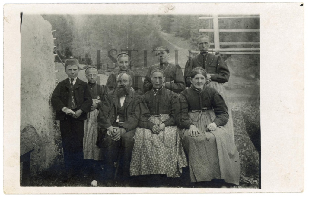 Descriziun: Le retrat mostra la familia Sorarú dl lüch de Sotsas a La Ila.