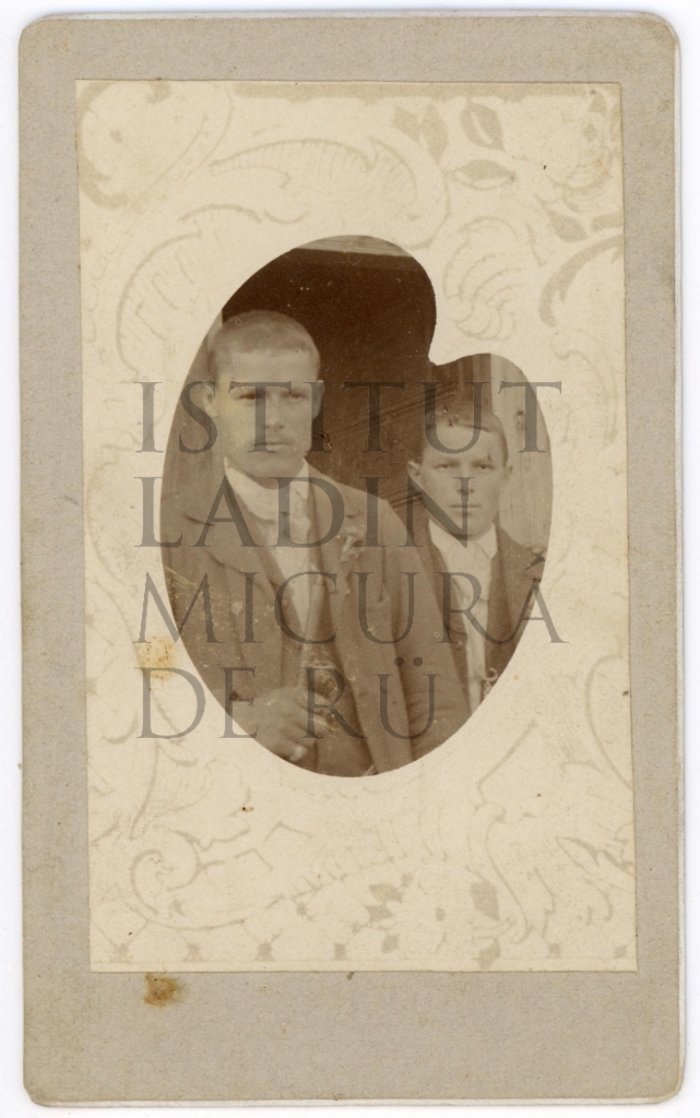 Descriziun: Le retrat mostra dui fredesc, chël sön la man ciampa podess bonamënter ester Pire Sorá.